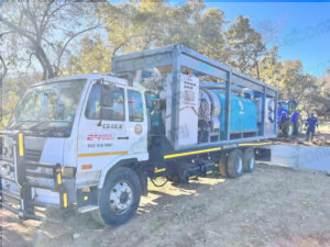 The transport to the location in a safe way is the most complex part of the startup of the testmachine. A 20 tons load in one piece!